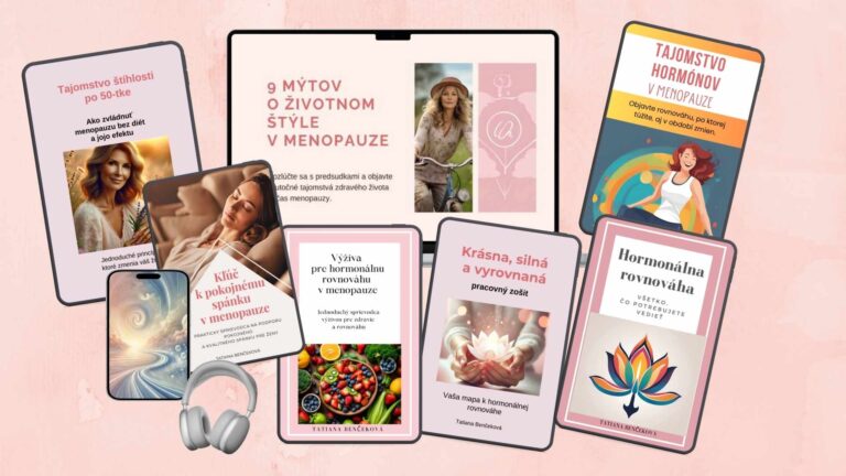 Vytvorila som pre teba kompletný balíček 5 e-bookov, ktorý ti ukáže, ako zvládnuť menopauzu krok za krokom, cez výživu, spánok, chudnutie, hormóny aj duševný pokoj.